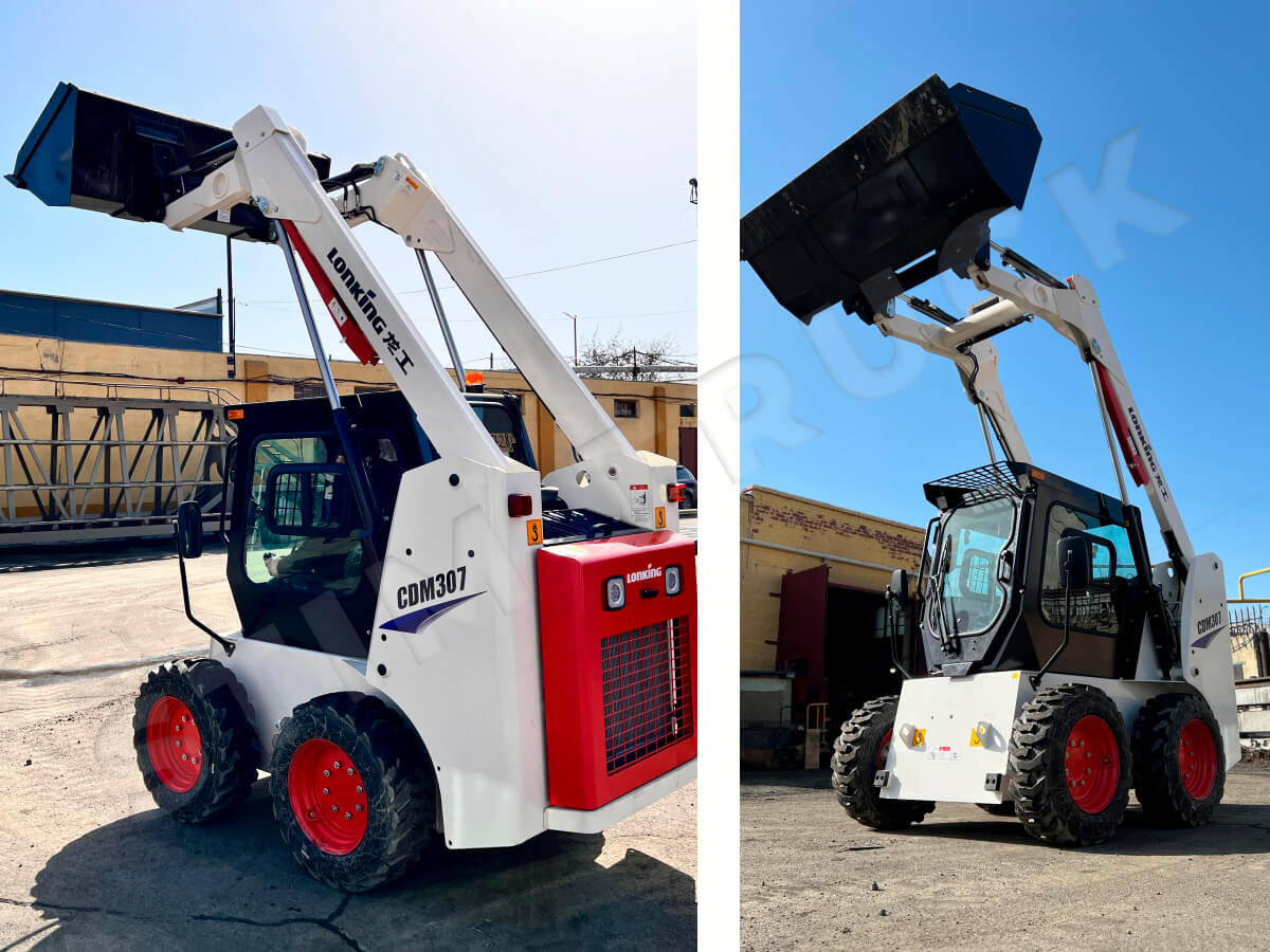 При грузоподъёмности до 950 кг (в зависимости от комплектации) и компактных габаритах, Lonking CDM307 эффективно заменяет более дорогие аналоги от Bobcat, JCB и CASE, при этом значительно выигрывая в цене приобретения и обслуживания.